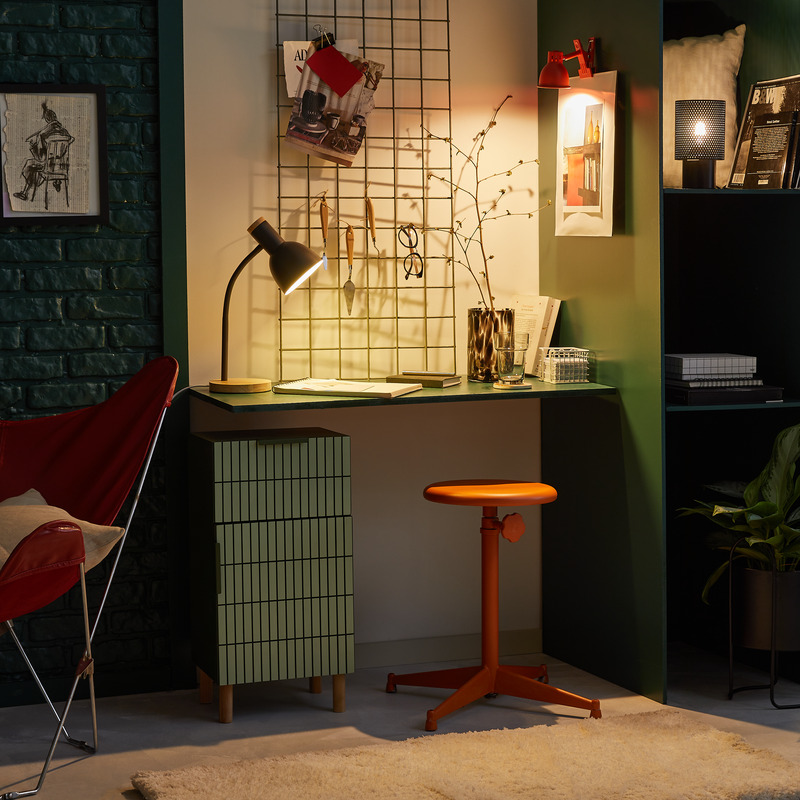 Klasyczny kształt, w którym wkomponowano funkcjonalne detale, sprawia, że lampa biurkowa Pohesi nie tylko oświetla pomieszczenie, ale także stanowi piękną dekorację. Dodatkowo, dzięki łatwemu włącznikowi ręcznemu na kablu oraz typowi trzonka E27, korzystanie z lampki jest wygodne i intuicyjne. Rodzina kolorów w tonacji czarno-granatowej sprawia, że pasuje do wielu wnętrz, nadając im elegancki i nowoczesny charakter.