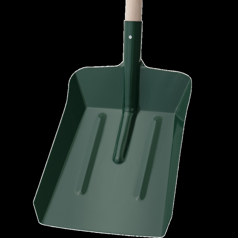 Narzędzie jest uniwersalne, sprawdza się w pracach porządkowych. Dzięki temu, że głowica jest szeroka i ma podwyższone krawędzie, można z łatwością ładować i przenosić węgiel lub drobne kamienie.