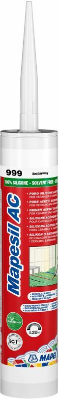 Silikon sanitarny Mapesil AC 999 310 ml Bezbarwny Mapei to doskonały kit uszczelniający przeznaczony do zastosowania na ceramice zarówno wewnątrz, jak i na zewnątrz pomieszczeń. Produkt marki MAPEI został stworzony z myślą o łatwym i precyzyjnym uszczelnianiu szczelin i fug. Jego skład oparty jest na silikonie octowym, co gwarantuje trwałość i elastyczność. Dzięki specjalnemu dyspenserowi aplikacja produktu jest szybka i wygodna. Silikon AC 999 jest odporny na różne warunki atmosferyczne, minimalna temperatura stosowania wynosi 5°C, a maksymalna 35°C. Po nałożeniu produktu należy poczekać około 24 godzin na jego wyschnięcie. Silikon nie wymaga malowania.
