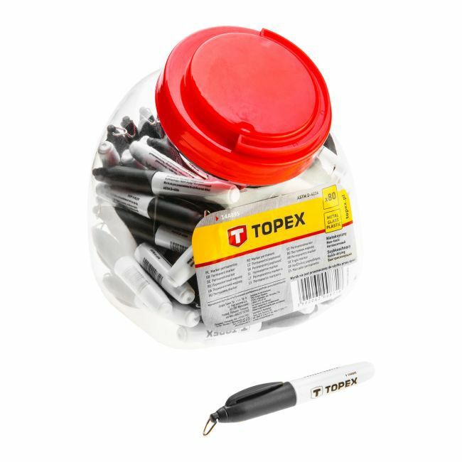 Mini marker Topex to idealne narzędzie do pracy zarówno na budowie, podczas remontów jak i do codziennego użytku. Dzięki niewielkim wymiarom opakowania, łatwo zmieści się w kieszeni czy torbie. Jego kształt oraz wygodny uchwyt zapewniają komfort użytkowania, a intensywny kolor czarny sprawia, że znaki i kreślenie są czytelne i trwałe.