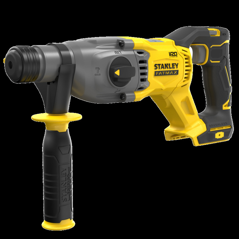 Młotowiertarka akumulatorowa Li 20V 2J SDS Plus SFMCH900B-XJ STANLEY FATMAX to bezszczotkowe narzędzie oferujące moc 18V oraz prędkość obrotową dochodzącą do 15000 obr/min. Narzędzie jest skierowane do użytkowników poszukujących wszechstronności i efektywności w pracy, jednak należy pamiętać, że oferta nie obejmuje akumulatorów ani ładowarki. Bezszczotkowa młotowiertarka udarowa SDS Plus 18V STANLEY® FATMAX® V20 - bez akumulatorów. 3 tryby (wiercenie udarowe, dłutowanie i wiercenie obrotowe) nadają się do różnorodnych zadań. Technologia bezszczotkowego silnika zapewnia lepszą sprawność i dłuższy czas pracy generowane przez mniejszy i bardziej kompaktowy silnik o mniejszych wymogach dotyczących konserwacji i wydłużonej trwałości. Włącznik z regulacją prędkości pozwala na maksymalne panowanie nad wykonywaniem zadania. Moc udaru do 5500 uderzeń/min, zapewnia wydajne wiercenie w murze. Silnik zapewnia do 1500 obr./min i 30 Nm momentu obrotowego do wydajnego wiercenia w drewnie i metalu. Energia udaru 2,0J umożliwia wydajne wiercenie i dłutowanie w betonie i kruszywach.
