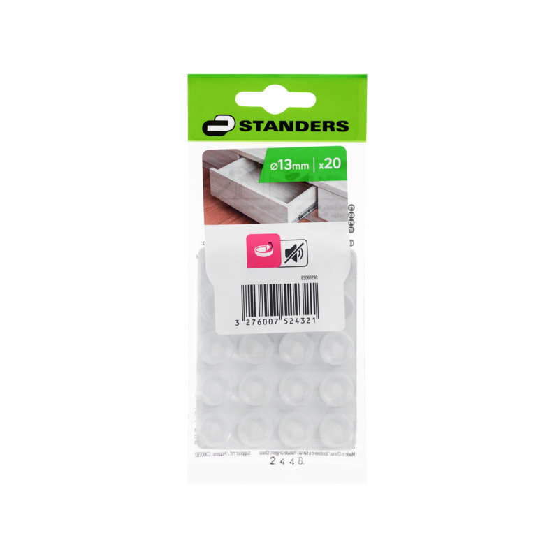 Odbojnik samoprzylepny do mebli 13 mm 20 szt. Standers to doskonałe rozwiązanie dla osób, które chcą zadbać o swoje meble i podłogi. Dzięki transparentnemu materiałowi z polichlorku winylu, odbojnik jest niemal niewidoczny, jednocześnie skutecznie chroniąc powierzchnie przed zarysowaniami i uszkodzeniami.
