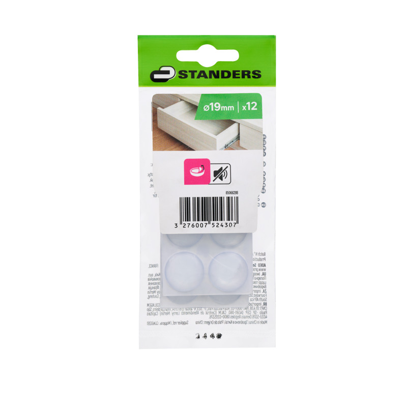Odbojnik samoprzylepny do mebli 19 mm 12 szt. Standers to niezawodne rozwiązanie do ochrony Twoich mebli przed wszelkimi uszkodzeniami. Dzięki wysokiej jakości materiałom, masz pewność, że Twój sprzęt pozostanie bezpieczny przez wiele lat.