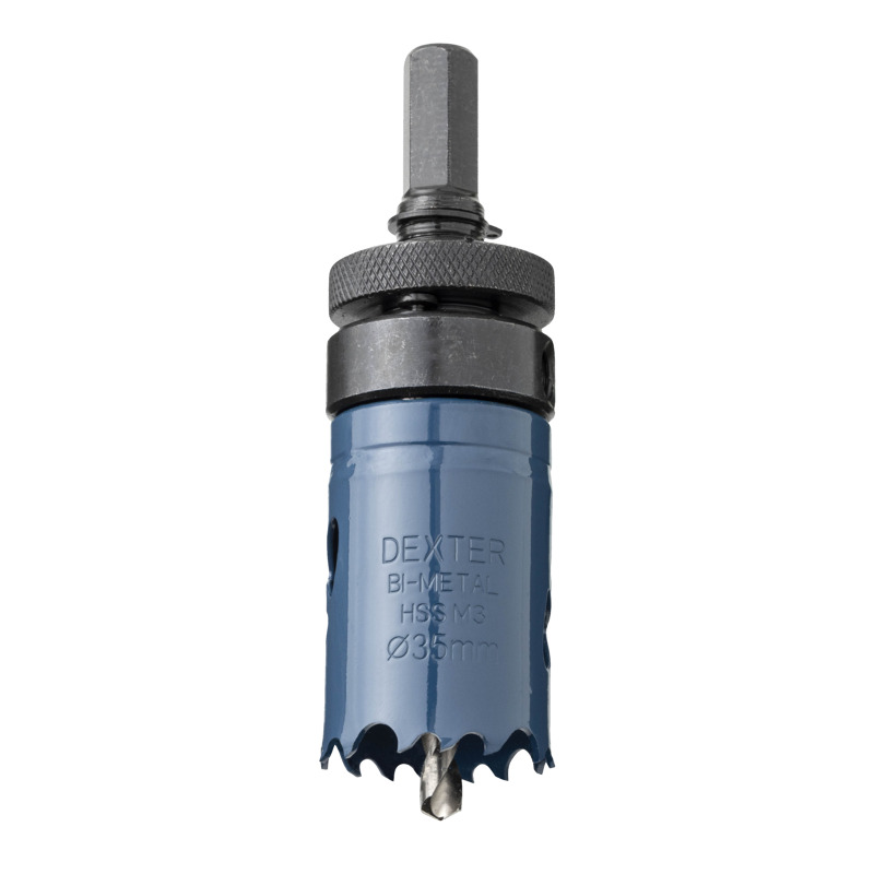 Otwornica do metalu HSS 35 mm + wiertło centrujące i trzpień DEXTER