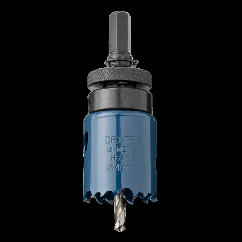 Otwornica do metalu HSS 40 mm + wiertło centrujące i trzpień DEXTER