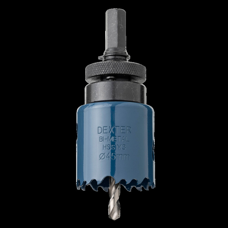 Otwornica do metalu HSS 45 mm + wiertło centrujące i trzpień DEXTER