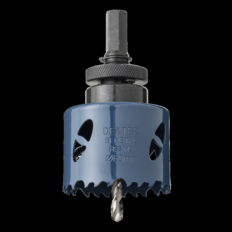 Otwornica do metalu HSS 60 mm + wiertło centrujące i trzpień DEXTER