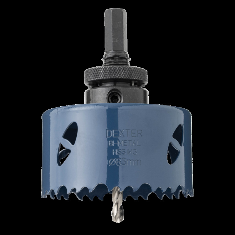 Otwornica do metalu HSS 83 mm + wiertło centrujące i trzpień DEXTER