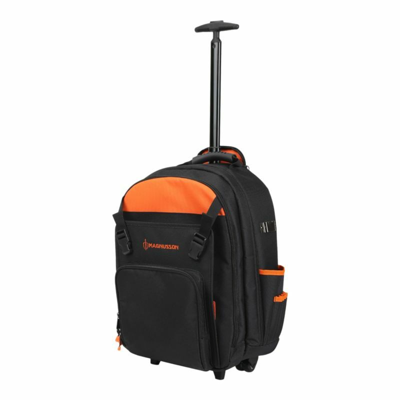 Wykonanie z poliestru 900 den zapewnia wytrzymałość i trwałość, Teleskopowy uchwyt, Duża komora, którą można wykorzystać na elektronarzędzie lub idealnie nadająca się na laptopa, Elastyczne paski umożliwiają łatwy dostęp do narzędzi przechowywanych w przedniej komorze, Dodatkowo wyściełany tył zapewnia komfort i oparcie, Siatkowa kieszeń na spodzie pomieści paski na ramiona w przypadku korzystania z kółek