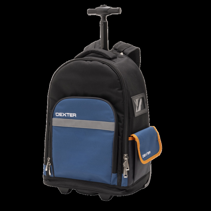 Ten plecak na kółkach marki DEXTER o pojemności 40L ma 14 kieszeni. Wyściółka na paskach sprawia, że jest lżejszy i wygodniejszy w noszeniu. Wyjmowana wewnętrzna komora umożliwia bezpieczne i prawidłowe przechowywanie narzędzi. Sztywna, wodoodporna plastikowa podstawa chroni plecak przed brudem i wilgocią. Podwójny zamek błyskawiczny umożliwiający dostęp do całej zawartości. Wymiary: 35 x 23 x 51 cm (szer. x gł. x wys.)