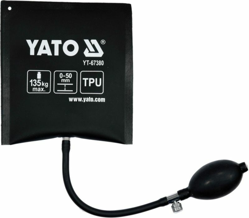 Poduszka pompowana do unoszenia elementów o wadze do 135 kg, Wymiary 150 x 160 mm, Wysokość unoszenia ok 50 mm, Wężyk z pompką i zaworem bezpieczeństwa długości ok. 290 mm