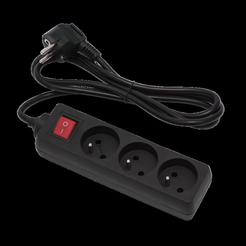 Przedłużacz z 3 gniazdami z uziemieniem z wyłącznikiem 3 m czarny Elgotech