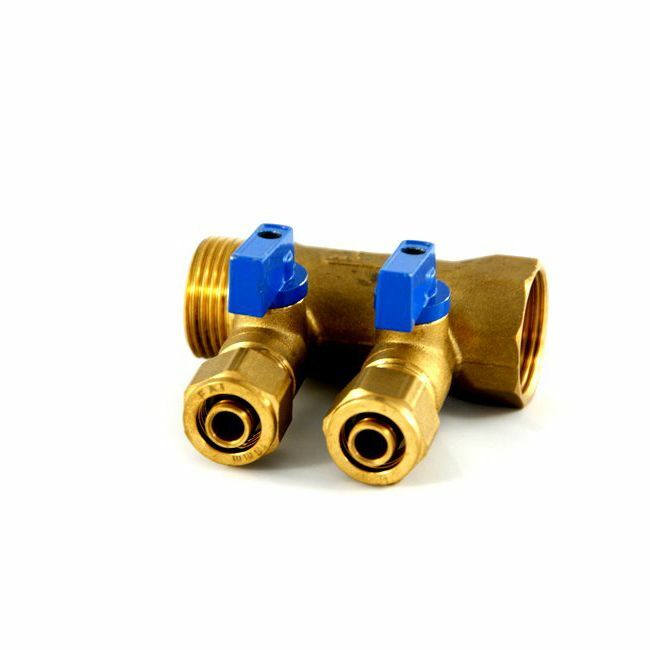 Rozdzielacz PEX Idmar Group 1" x 2 x 16 z zaworami do zimnej wody