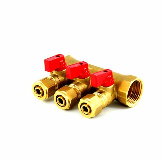 Rozdzielacz PEX Idmar Group 1" x 3 x 16 z zaworami do ciepłej wody