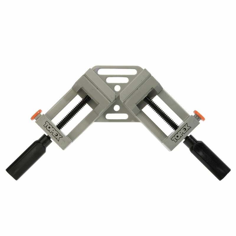 Ścisk kątowy 65 x 75 mm wykonany z aluminium marki TOPEX, idealny do prac stolarskich i montażowych. Dzięki solidnej konstrukcji oraz precyzyjnemu wykonaniu gwarantuje stabilność i trwałość podczas użytkowania. Ścisk posiada regulację zacisku w zakresie do 65 mm oraz kształt kątowy, co ułatwia pracę w trudno dostępnych miejscach. Model 12A300 zapewnia komfort użytkowania oraz doskonałe osiągi przy minimalnym nakładzie siły.