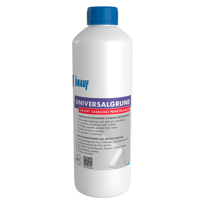 Grunt uniwersalny Knauf 1l to profesjonalny preparat przeznaczony do gruntowania podłoża przed tynkowaniem, malowaniem, tapetowaniem oraz układaniem płytek ceramicznych zarówno na ścianach jak i podłogach. Dzięki specjalnej formule, grunt doskonale wypełnia pory, zapewniając doskonałą przyczepność warstw wykończeniowych. Jego łatwa aplikacja oraz szybkie schnięcie sprawiają, że prace remontowe przebiegają sprawnie i bezproblemowo.