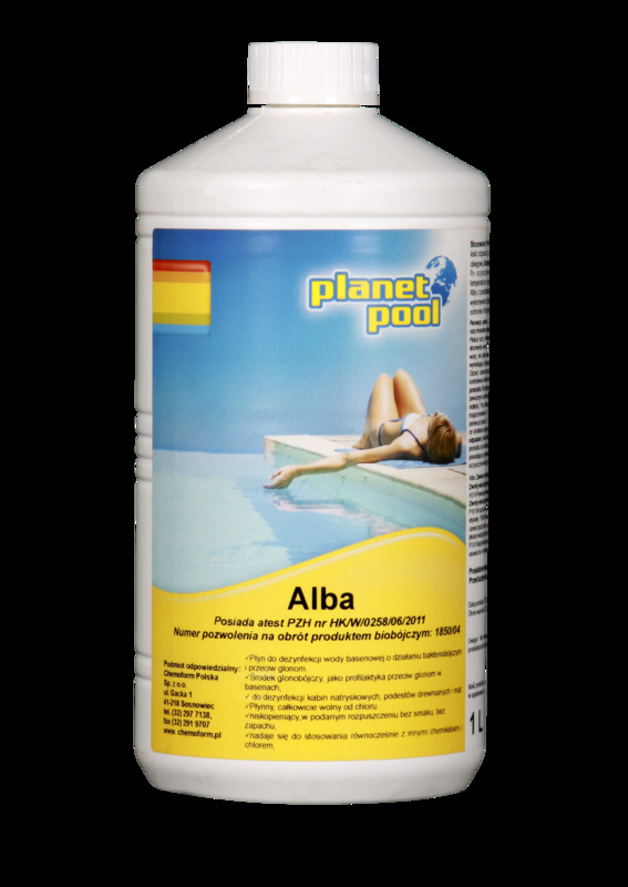 Kontynuacja opisu płynu do basenu Alba 1l Planet pool. Ponadczasowy skład preparatu oraz łatwość aplikacji sprawiają, że korzystanie z tego produktu jest prawdziwą przyjemnością. Alba to gwarancja czystości i klarowności wody w Twoim basenie przez wiele sezonów. Wybierz sprawdzony produkt, który sprosta nawet najwyższym oczekiwaniom.