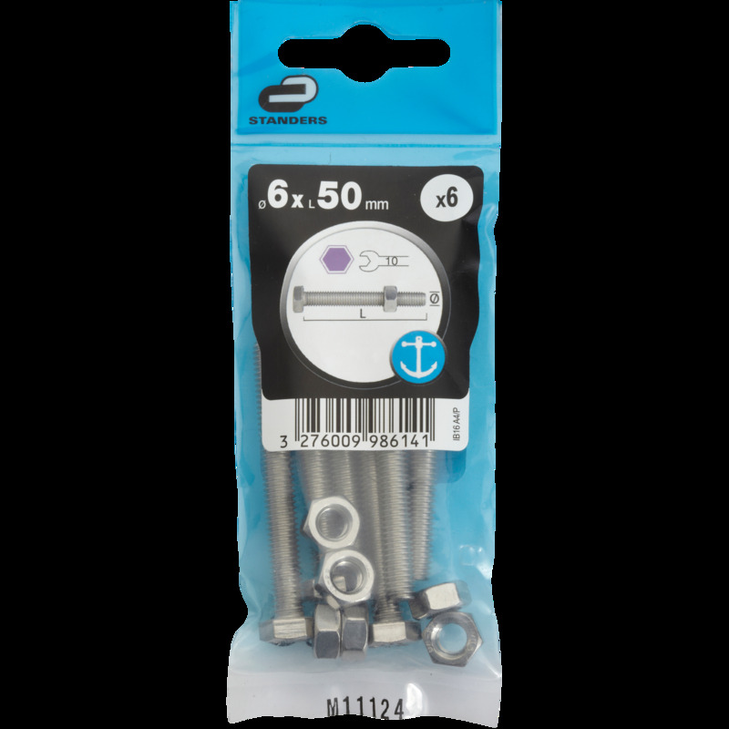 Śruba łeb sześciokątny 6 mm stal nierdzewna 6 x 50 mm 6 szt. Standers