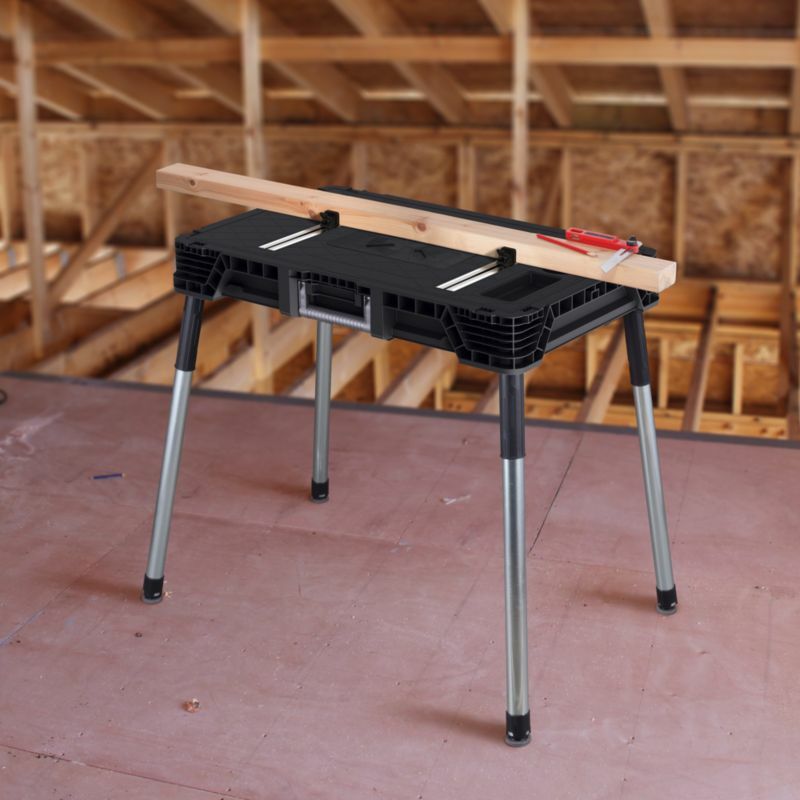 Stół warsztatowy Magnusson przenośny to praktyczne rozwiązania dla każdego warsztatu. Po złożeniu ma wymiary 880 mm długości, 112 mm szerokości oraz wysokość 554 mm, z możliwością regulacji wysokości od 45 mm do 813 mm. Pozwala to dostosować go do różnych potrzeb pracy. Konstrukcja ramy i blatu z tworzywa sztucznego wytrzymuje obciążenie do 453 kg, zapewniając stabilność podczas intensywnego użytkowania. Lekki, ważący jedynie 7,2 kg stół jest łatwy do przenoszenia dzięki składanym uchwytom, które jednocześnie ułatwiają jego przechowywanie. Czarny kolor harmonijnie wpisuje się w różne aranżacje warsztatowe, a konstrukcja oparta na trwałych materiałach gwarantuje długą żywotność produktu. Stół warsztatowy Magnusson przenośny to niezawodny wybór dla profesjonalistów i amatorów, którzy cenią sobie wygodę i efektywność pracy.