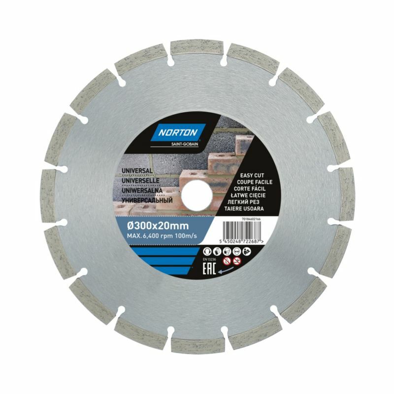 Tarcza diamentowa Norton do cięcia uniwersalna 300 x 20 mm to doskonała jakość wykonania, która zadowoli nawet najbardziej wymagających użytkowników. Dzięki użyciu wysokiej jakości materiałów, tarcza ta gwarantuje precyzyjne i bezproblemowe cięcie różnorodnych materiałów.