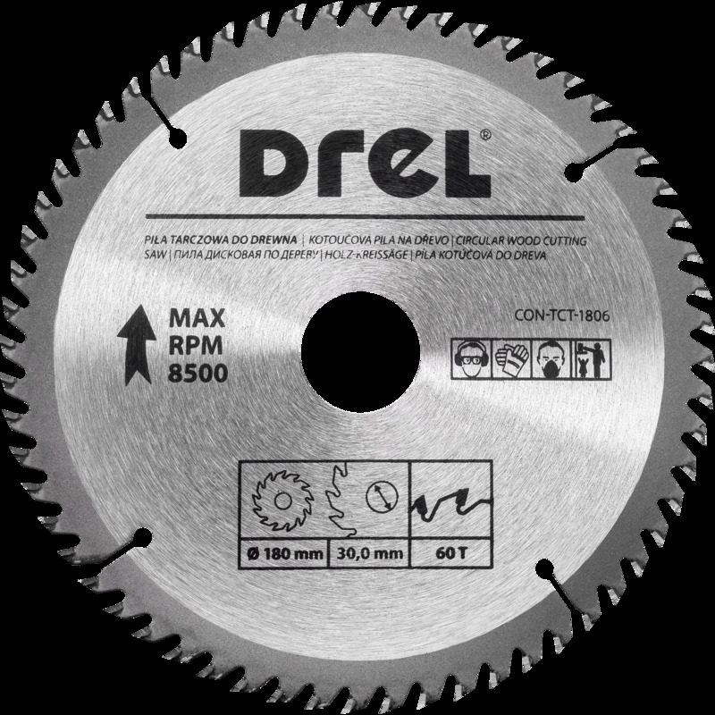 Ta tarcza do cięcia drewna firmy DREL o średnicy 180mm i otworze o średnicy 30mm oraz 60 zębach idealnie sprawdzi się podczas prac stolarskich i rzemieślniczych. Wykonana z wysokiej jakości węgliku spiekanego gwarantuje precyzyjne i czyste cięcia. Dzięki kształtowi zębów trapezowych/klinowych oraz maksymalnej grubości cięcia do 2mm produkt ten jest niezastąpiony przy cięciu prostym. Doskonale współpracuje z każdą pilarką, a typ mocowania kołnierz i śruba zapewnia łatwy i stabilny montaż. Produkt objęty jest 2-letnią gwarancją, co dodatkowo potwierdza jego wysoką jakość.