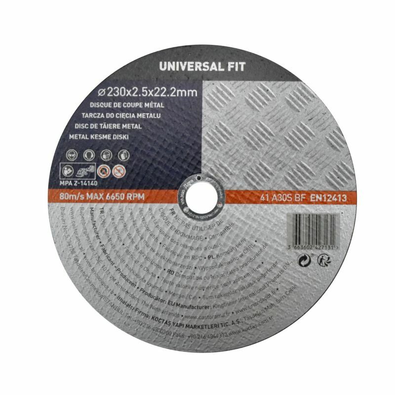 Tarcza do cięcia metalu Universal fit 230 x 2,5 mm została wykonana z solidnych i trwałych materiałów, co gwarantuje długą żywotność i niezawodność podczas pracy.