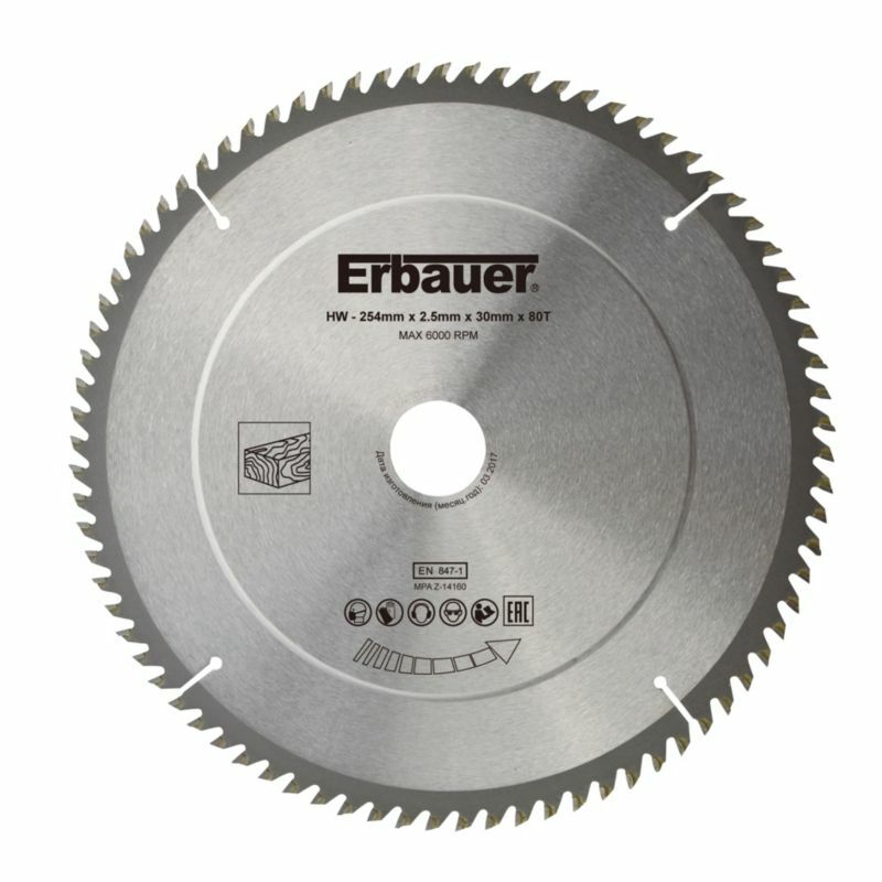 Tarcza do drewna Erbauer 254 x 30/25/20/16 mm 80T