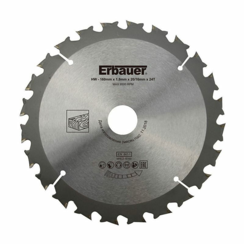Tarcza do drewna Erbauer fi 160 x 20/16 mm 24T