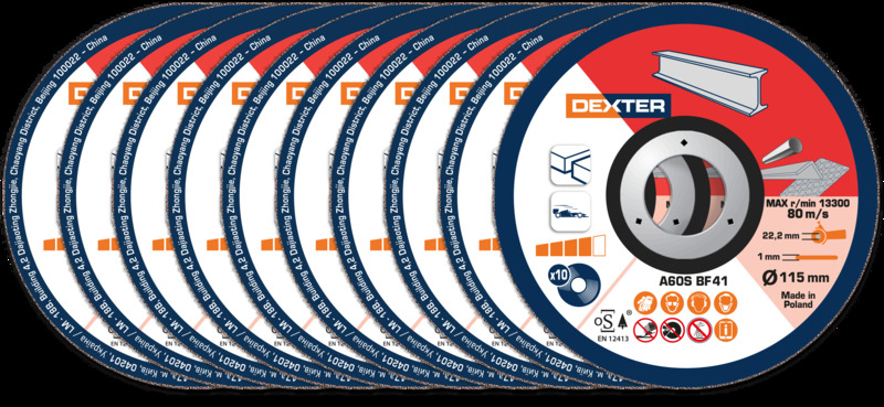 Tarcze do szlifierki kątowej do cięcia stali 41 115 x 1 x 22.23 mm STAL/INOX 10 szt. DEXTER