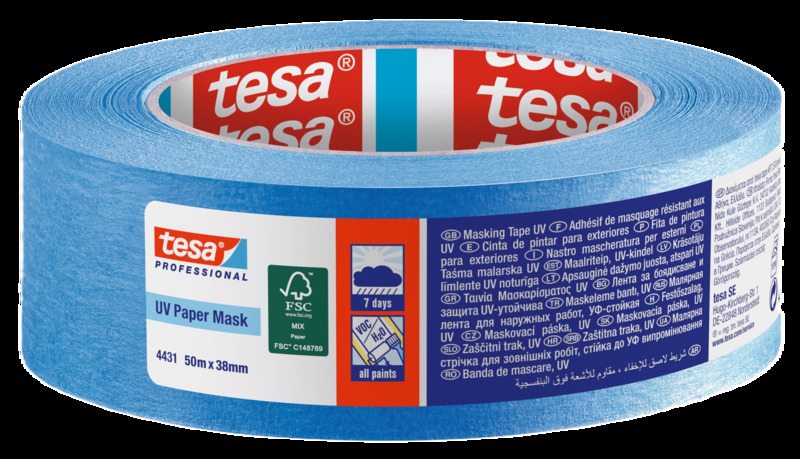 tesa® 4431 to lekko krepowana taśma papierowa z akrylową substancją klejącą . Znajduje zastosowanie w różnego rodzaju zewnętrznych pracach malarskich, np. to zabezpieczenia drzwi garażowych, balustrady balkonu. Nadaje się do stosowania z różnymi rodzajami farb. Niebieska taśma maskująca jest odporna na promieniowanie UV nawet przez tydzień, co pozwala wykonać bardziej wymagają ce prace malarskie. Łatwa w aplikacji, zapewnia uzyskanie prostych i czystych krawędzi malarskich.