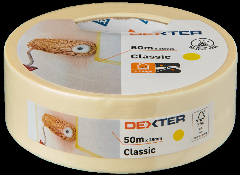 Taśma maskująca marki DEXTER to gwarancja precyzyjnego i profesjonalnego maskowania podczas malowania oryginalnymi kolorami farb. Dzięki niej prace remontowe stają się przyjemniejsze i sprawniejsze.