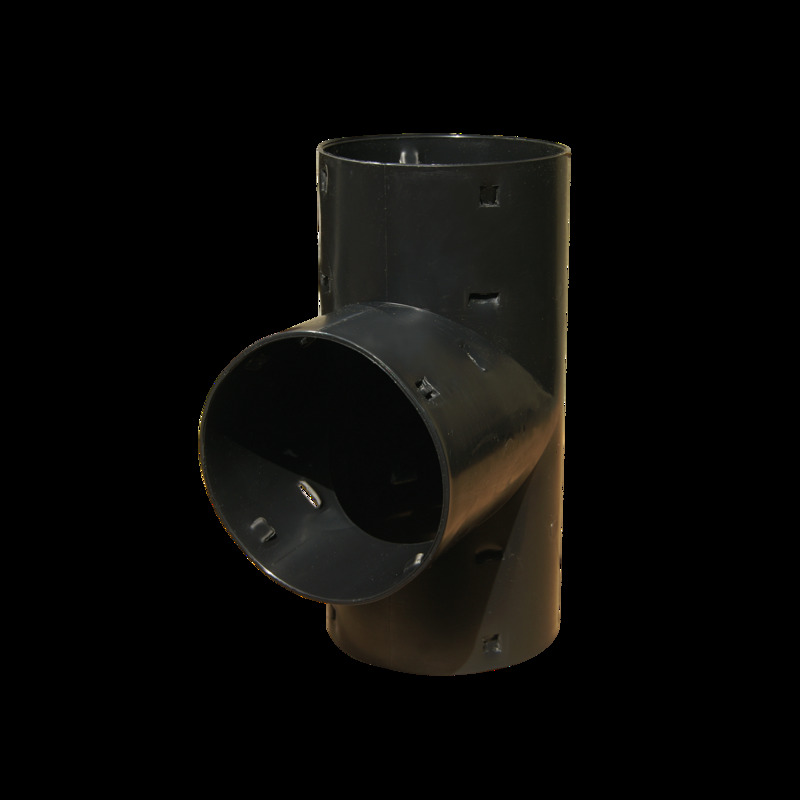 Wewnętrzne zaczepy trójnika blokują rurę drenarską, zapewniając stabilność i szczelność połączenia. Doskonale chroni przed uszkodzeniami mechanicznymi.