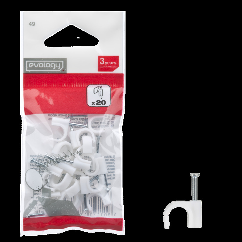 Uchwyt kablowy EVODPM49 20szt. EVOLOGY to solidność i trwałość w jednym. Dzięki wysokiej jakości materiałom i precyzyjnemu wykonaniu, produkt zapewnia niezawodne mocowanie przewodów antenowych, bez ryzyka ich uszkodzenia.