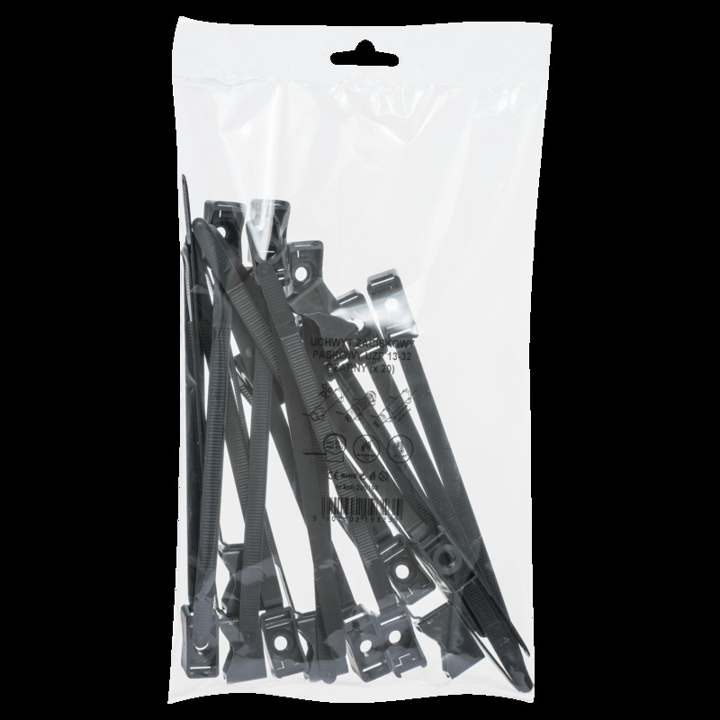 Uchwyt paskowy UZP 13/32 20szt. AKS ZIELONKA to niezawodne i solidne mocowanie do przewodów o średnicy od 13 do 32 mm. Wykonany z wysokiej jakości polichlorku winylu (PVC), uchwyt jest przeznaczony do zastosowania zarówno wewnątrz, jak i na zewnątrz budynków. Jego kolorystyka w czarnym kolorze sprawia, że doskonale komponuje się z otoczeniem, a także zapewnia estetyczne wykończenie. Uchwyt jest idealny do natynkowego układania przewodów, wiązek przewodów, rur i innych elementów instalacyjnych. W opakowaniu znajduje się 20 sztuk mocowań, co pozwala na kompleksowe wykorzystanie produktu w różnych instalacjach.