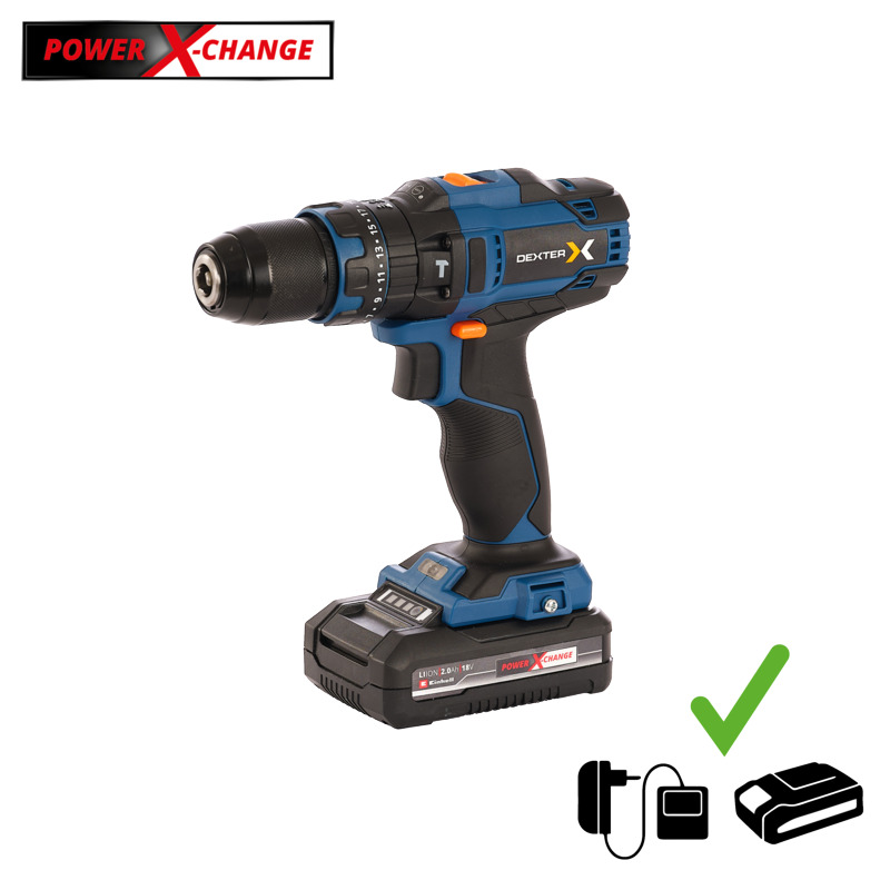 Wiertarko-wkrętarka udarowa akumulatorowa LI 18V 44NM Power X-Change +akumulator 2.5 AH, ładowarka DEXTER