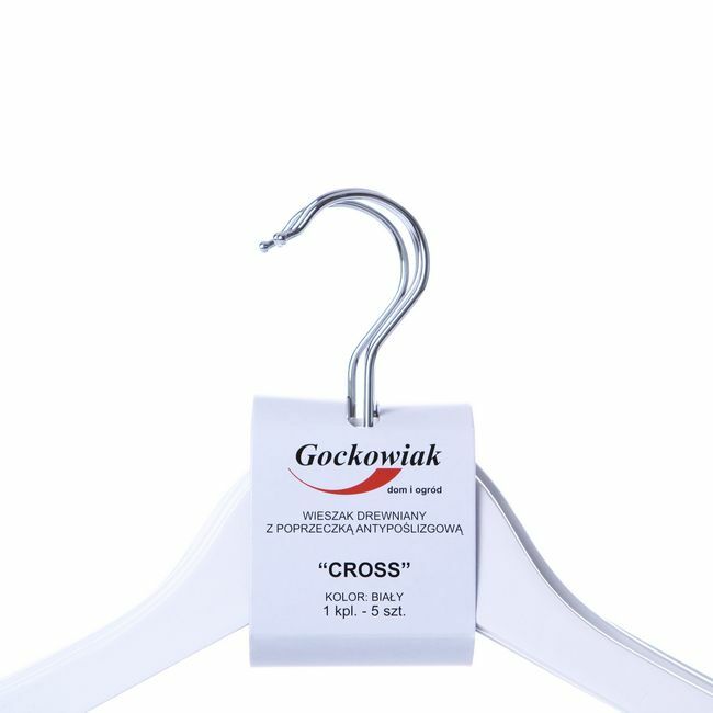 Wieszak drewniany Cross biały 5 szt. to niezbędny element do przechowywania ubrań. Dodaj porządek i styl swojej przestrzeni!