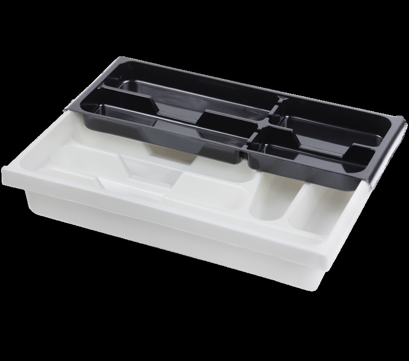 Organizer wykonany z wysokiej jakości materiałów w białym kolorze z czarnymi elementami prezentuje się elegancko i nowocześnie. Dzięki jego estetyce wnętrze szuflady nabierze charakteru i stylu.
