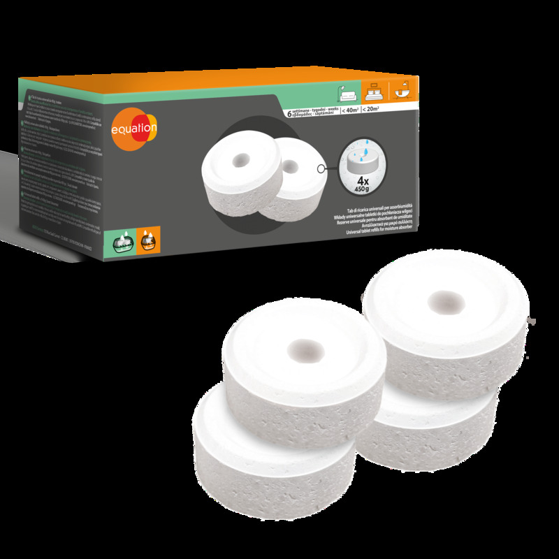 Wkład pochłaniacza wilgoci neutralny 4 x 450 gr Equation to doskonałe rozwiązanie do utrzymania optymalnej wilgotności w pomieszczeniach o powierzchni do 20 m². Tabletka wkłady pochłaniają wilgoć skutecznie, nadając się idealnie do szuflad, szaf, czy garderób. Ich neutralny zapach sprawia, że są odpowiednie do każdego wnętrza. Dzięki temu, że w opakowaniu znajduje się 4 wkłady wymienne, można je stosować przez długi czas, zapewniając świeże powietrze przez wiele miesięcy. Marka EQUATION gwarantuje wysoką jakość i skuteczność produktu przez 2 lata.