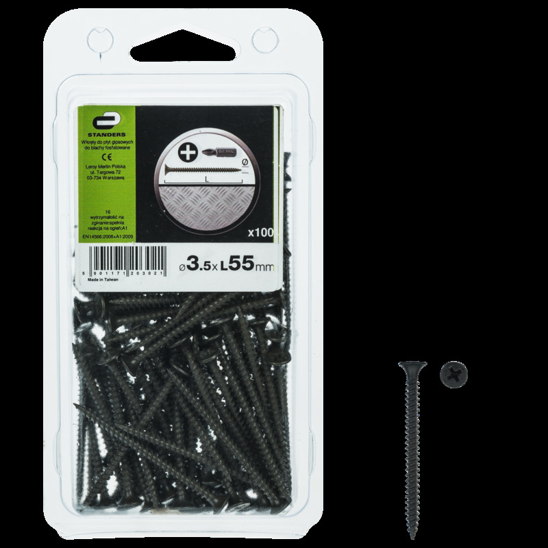 Wkręt do płyt G-K 3.5 x 55 100 szt. Standers to niezawodne rozwiązanie do solidnego mocowania płyt gipsowo-kartonowych. Zapewnia stabilność i trwałość konstrukcji.