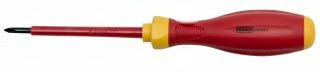 Wkrętak elektrotechniczny izolowany krzyżowy Philips Modeco wykonany ze stali hartowanej CR-V, gwarantującej trwałość i odporność na odkształcenia.Trzon posiada izolację umożliwiającą pracę z napięciem do 1000 V. Grot wyposażony został w krzyżową końcówkę o rozmiarze PH1 i twardości 48 -50. Wkrętak posiada standardową rękojeść oraz klingę o długości 100 mm. Przenaczony do ogólnych zastosowań.Produkt spełnia wymogi Unii Europejskiej w zakresie bezpieczeństwa potwierdzone certyfikatem TÜV Rheinland.