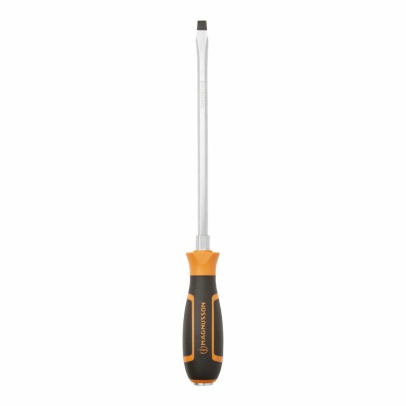 Wkrętak płaski Magnusson to niezawodne narzędzie, które sprawdzi się doskonale podczas wszelkich prac warsztatowych i majsterkowania. Dzięki ergonomicznemu uchwytowi zapewnia komfortową pracę, a wytrzymały i trwały grot doskonale sprawdza się nawet w najcięższych warunkach. Jego uniwersalne zastosowanie pozwoli Ci szybko i precyzyjnie wykonać wszelkie prace montażowe i naprawcze. Niezastąpiony element wyposażenia każdego majsterkowicza.