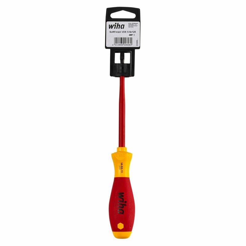 Wkrętak płaski VDE Wiha izolowany 5,5 x 125 mm to niezastąpione narzędzie do wykonywania precyzyjnych prac warsztatowych i majsterkowania. Dzięki wysokiej jakości materiałom wykonania, gwarantuje bezpieczną pracę nawet przy napięciach do 1000 V. Solidny trzonek o długości 125 mm oraz ergonomiczny uchwyt z elastomeru termoplastycznego zapewniają wygodę i pewny chwyt podczas użytkowania. Wkrętak jest lekki i poręczny, idealny do profesjonalnego użycia w warsztacie czy przy drobnych naprawach w domu.
