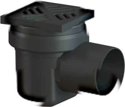 Wpust piwniczny z tworzywa sztucznego, z rusztem 150x150, z syfonem i wyjmowanym osadnikiem, kolor czarny Systemowy ruszt z osadnikiem i wyczystką