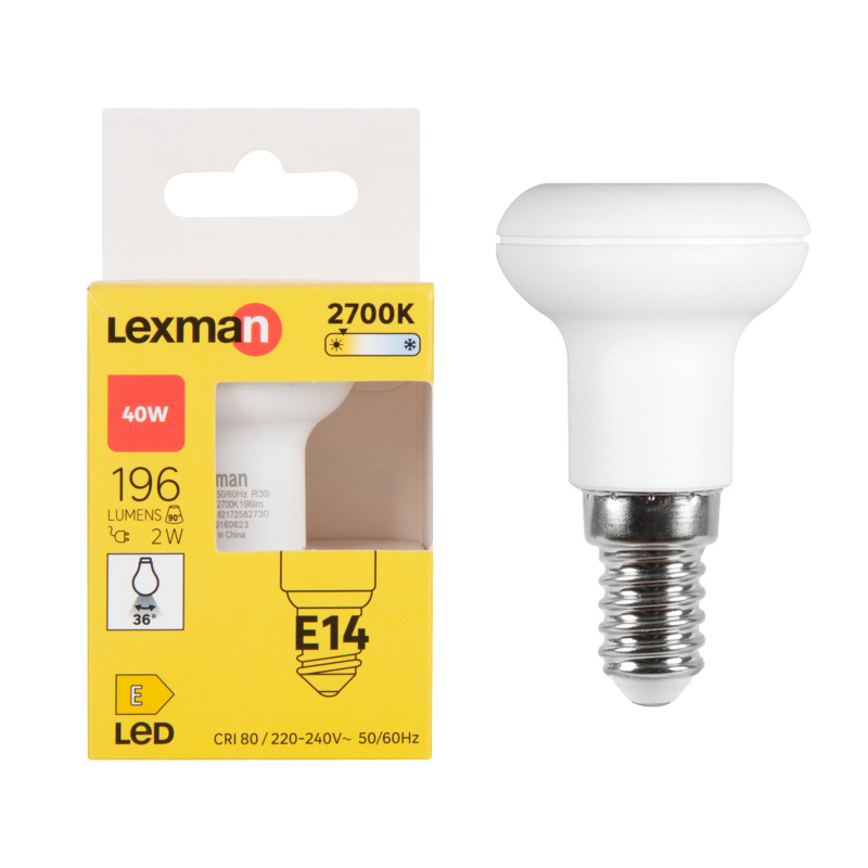Złóż swoje wnętrza w ciepłe światła za pomocą żarówki LED E14 2 W 196 lm Ciepła biel Lexman. Ta energooszczędna żarówka o mocy 2 W emituje przyjemne, ciepłe światło o temperaturze 2700 K. Dzięki żywotności 25000 godzin będziesz mógł cieszyć się jej jasnym światłem przez wiele lat. Ponadto, z kątem świecenia wynoszącym 36 stopni, doskonale oświetli wybrane miejsce w pomieszczeniu. Niezawodna marka LEXMAN zapewnia wysoką jakość i trwałość produktu, ciesząc się gwarancją 5 lat.