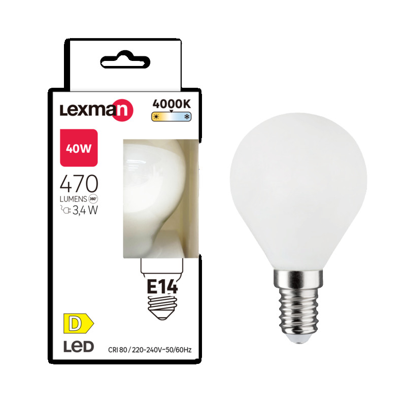 Żarówka LED E14 3,4 W 470 lm Neutralna biel Lexman zapewnia jasne i równomierne oświetlenie bez zbędnych marnotrawstw energii.