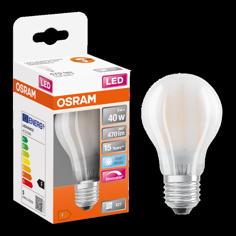 Żarówka LED E27 5 W = 40 W 470 LM Neutralna biel Osram to niezwykle energooszczędna żarówka LED o mocy 5 W, która generuje strumień światła o jasności 470 lumenów. Dzięki neutralnej bieli barwie światła doskonale nadaje się do wielu zastosowań zarówno w domu, jak i w biurze. Żywotność żarówki wynosi aż 15000 godzin, co sprawia, że będziesz cieszyć się jej światłem przez wiele lat. Dodatkowo możliwość ściemniania pozwala regulować intensywność światła w zależności od potrzeb.