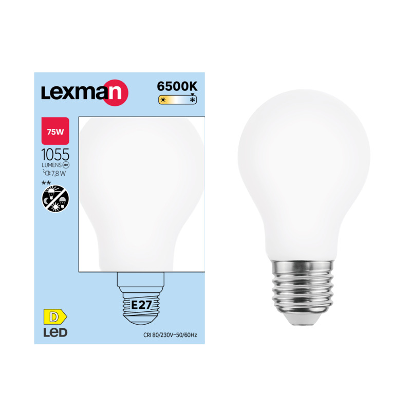 Żarówka LED E27 7,8 W 1055 lm Zimna biel to produkt marki LEXMAN, który cechuje się wysoką jakością wykonania oraz energooszczędnością. Dzięki swojej mocy świetlnej oraz temperaturze koloru 6500K, zapewnia optymalne oświetlenie, idealne do stosowania zarówno w domu, jak i w biurze. Żywotność tego produktu wynosi aż 25000 godzin, co gwarantuje długotrwałe użytkowanie bez konieczności częstej wymiany. Ponadto, żarówka ta posiada trzpieniowy trzonek E27, co sprawia, że łatwo ją zamontować w standardowych oprawkach.