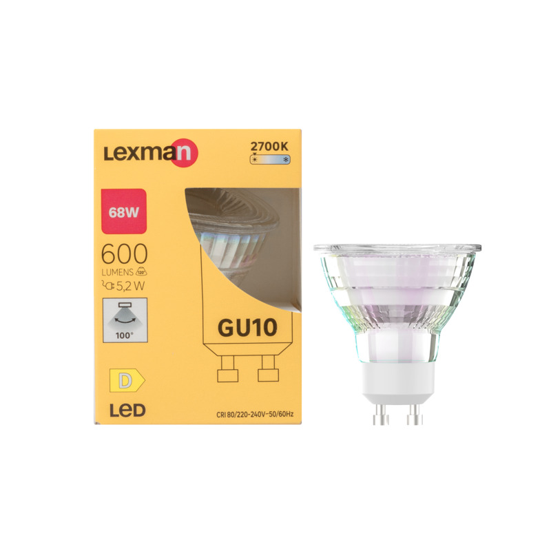 Dzięki transparentnemu wykończeniu szkła oraz wysokiej jakości materiałom, żarówka Lexman prezentuje się nowocześnie i elegancko. Jej trzonek GU10 oraz kształt reflektorka ułatwiają montaż i użytkowanie.