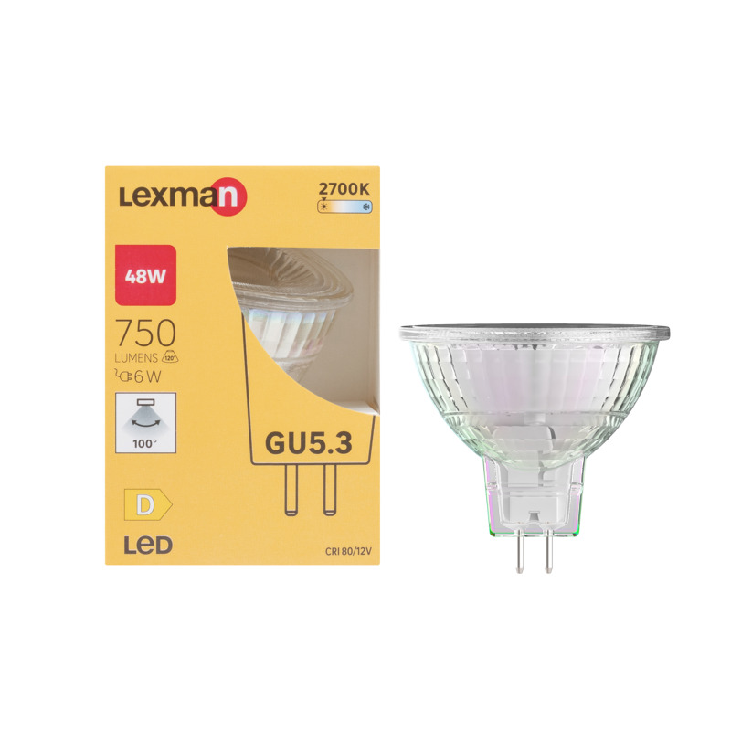 Klasyczny design żarówki LED GU5.3 6 W 750 lm Ciepła biel Lexman sprawia, że pasuje zarówno do nowoczesnych, jak i tradycyjnych wnętrz. Dzięki temperaturze barwowej 2700 K zapewnia przyjemne i ciepłe światło, które sprzyja relaksowi i odpoczynkowi. Żarówka została zaprojektowana tak, aby emitować światło o kącie świecenia 100 stopni, co sprawia, że oświetla równomiernie całe pomieszczenie.