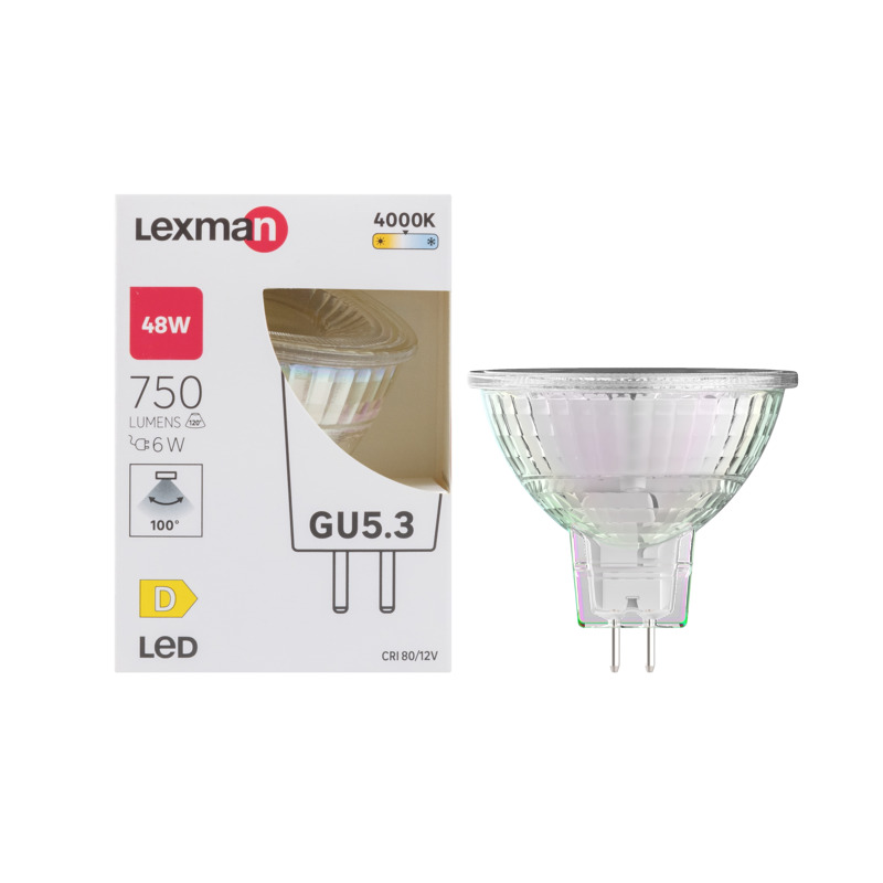 Żarówka LED GU5.3 6 W 750 lm Neutralna biel Lexman to doskonałe rozwiązanie dla osób poszukujących energooszczędnych i trwałych żarówek do swojego domu bądź biura. Dzięki swojej mocy 6 W i świetlności 750 lm zapewniają odpowiednie oświetlenie w pomieszczeniach o różnym przeznaczeniu. Żywotność żarówki wynosząca 25000 godzin sprawia, że nie trzeba się martwić o częste wymiany. Dodatkowo, dzięki niskiemu zużyciu energii na 1000 godzin (6 kW-h), korzystanie z żarówki staje się ekonomiczne i przyjazne dla portfela.